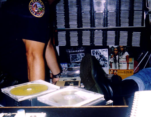 The locale: picture taken during Doron's show, while he was talking to a fan (that's why the cop was there, really), 8.14.03
