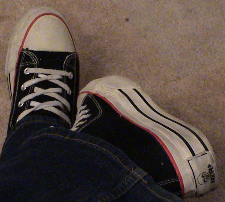 The shoes: I bought these back in high school at some store in the Broward Mall (probably long gone by now). I loved them because they looked like Chucks (they aren't) and they were platforms.